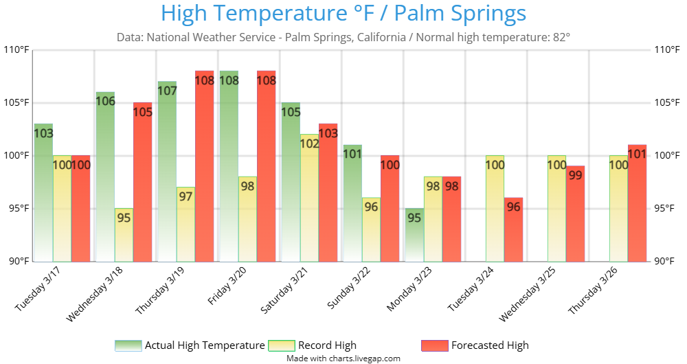 March Temperature Record: 104° (set in 1966)