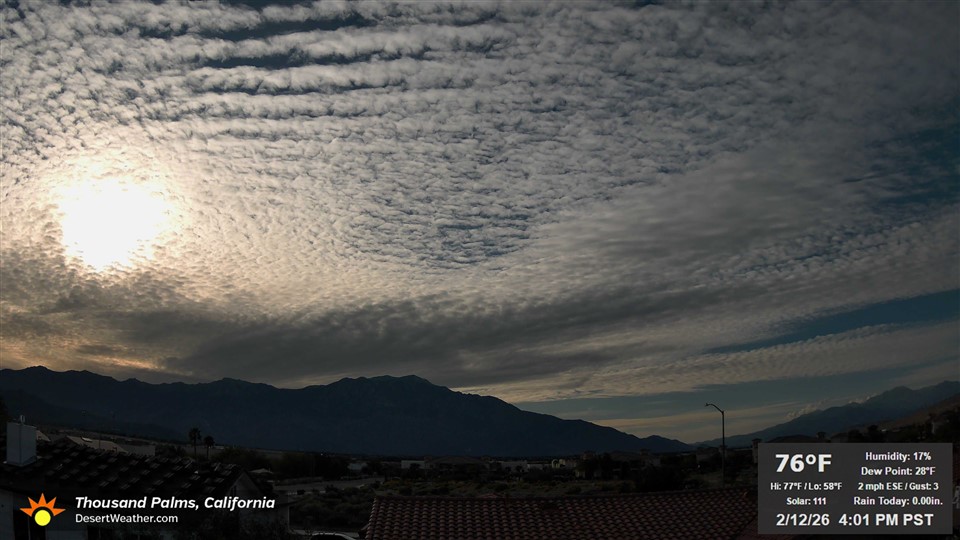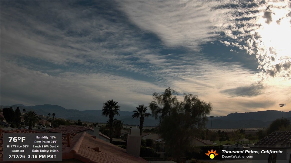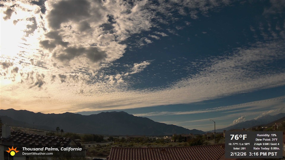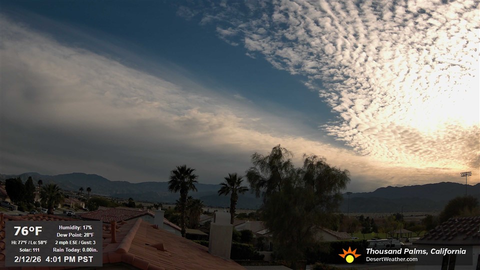 This page will highlight some of the occasional Sunsets, and other sky scapes, we see here in the desert from the view of the Weathercams!