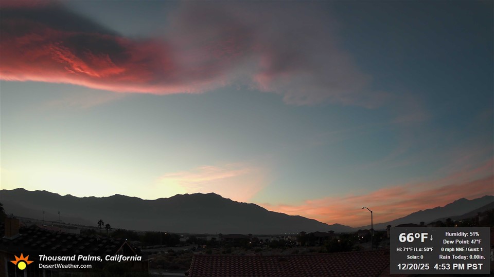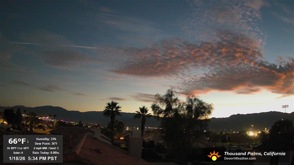 This page will highlight some of the occasional Sunsets, and other sky scapes, we see here in the desert from the view of the Weathercams!